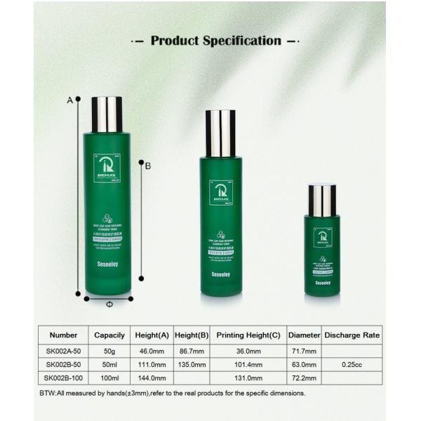 With a generous 100ml capacity, our exfoliating lotion bottle is designed to become an essential part of your skincare regimen. Embrace the tranquility of the green hue, the purity of the white pump, and the modern elegance of the silver finish as you integrate this bottle into your daily beauty ritual.